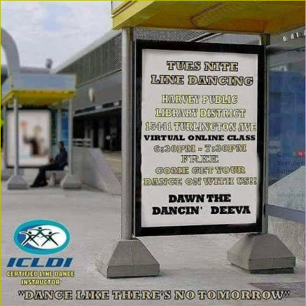 Harvey Library6:30-7:30pmBeginnersFREEContact Dawn to get registered and signed up receive the weekly YouTube link708 705 8489